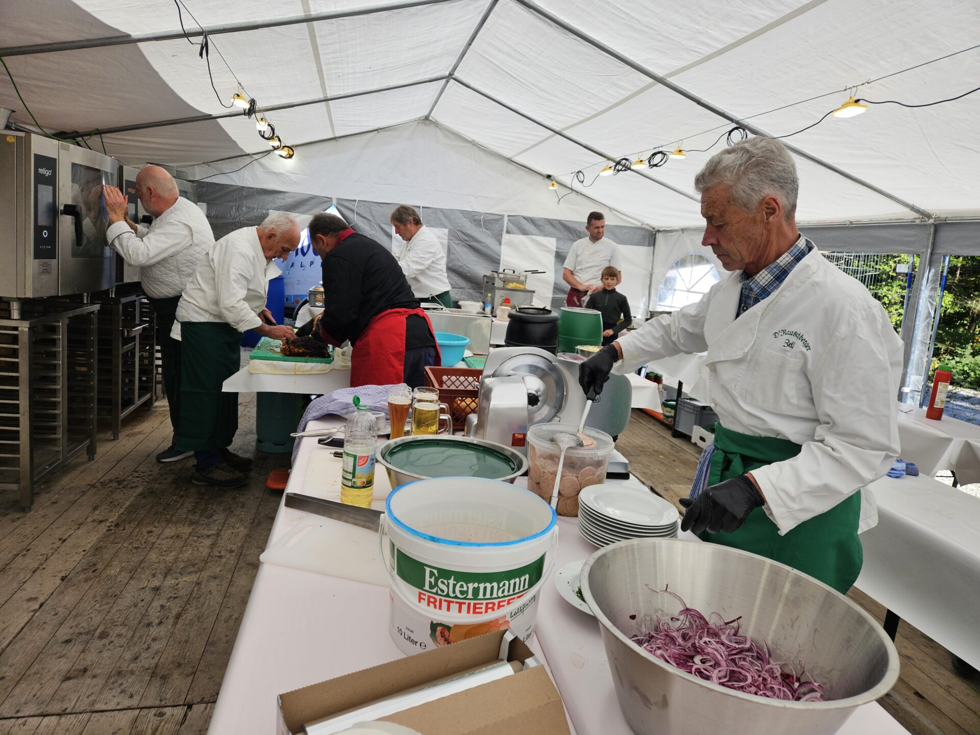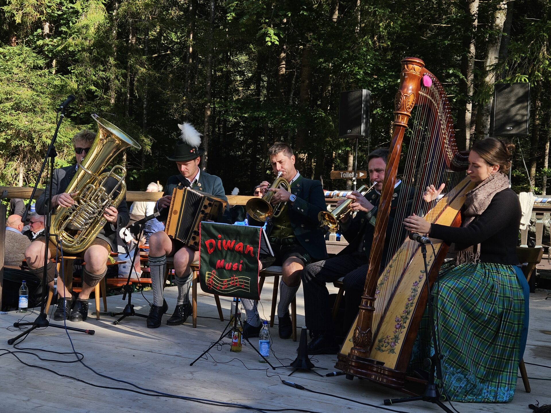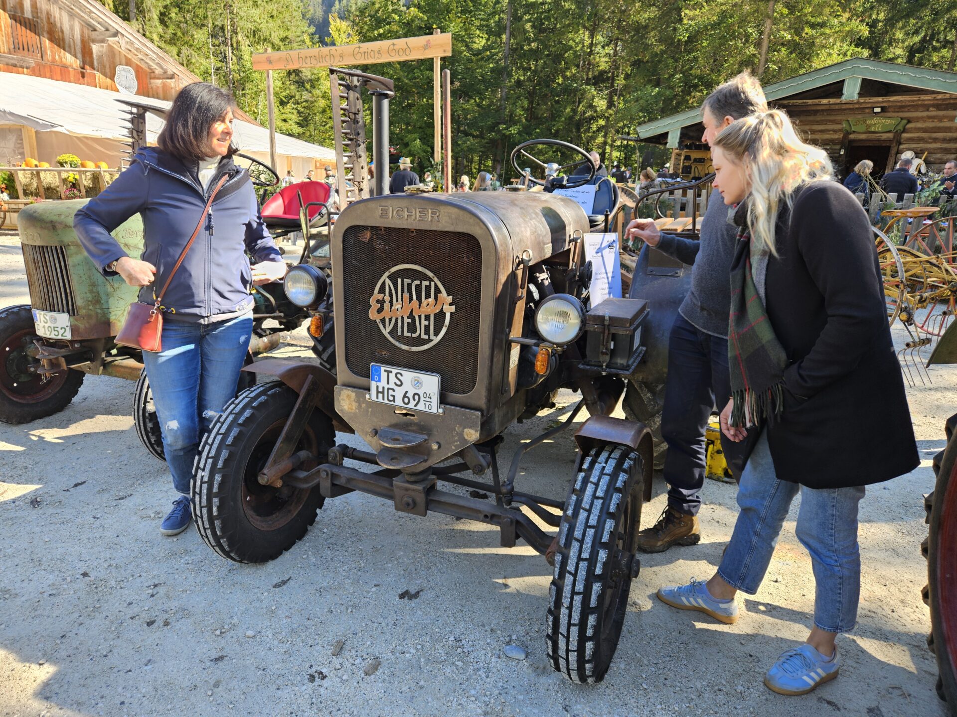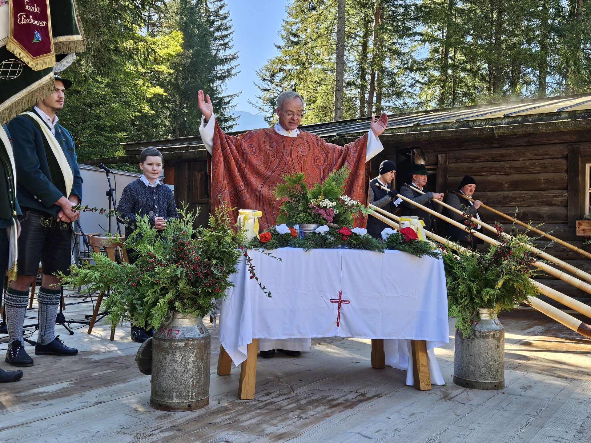Großartige Stimmung herrschte beim „Herbstletzt“ in der Laubau, das der Trachtenverein D’Rauschberger-Zell am Tag der Deutschen Einheit veranstaltete. Vom riesigen Ansturm der Besucher, die sich trotz der anfänglich eisigen Temperaturen auf dem Gelände einfanden, waren selbst die Organisatoren angenehm überrascht. Denn frühmorgens mussten die Helfer zuerst noch die Sitzgelegenheiten von einer dicken Reifschicht befreien. Eingeläutet wurde das Herbstletzt mit einem Dank-Gottesdienst, den Teisendorfs Pfarrer Martin Klein zelebrierte, musikalisch umrahmt vom Alphornbläser-Quintett des Vereins. Das geistliche Vereinsmitglied hatte sich dazu – wie bei solchen Anlässen üblich – das historische Messgwand übergestreift. Gegen Mittag und den ganzen Nachmittag über zeigte sich dann die Herbstsonne von ihrer besten Seite, so dass die Gäste das vielfältige Angebot an bodenständigen Attraktionen und Darbietungen so richtig nach Herzenslust genießen konnten. Für Jung und Alt war jedenfalls eine Menge geboten. Die Vereinshütte thematisierte in einer Ausstellung historisches Gewand und Trachten, wie sie im Miesenbacher Tal einst getragen wurden, dazu passte der Stand des Federkielstickers, den man bei seiner handwerklich-künstlerischen Arbeit zuschauen konnte, im Freigelände tummelten sich zur Freude der Kinder verschiedene Schaf- und Ziegenrassen, und sogar ein Hufschmied zeigte anschaulich, worauf es bei der „Pediküre“ seines Süddeutschen Kaltbluts ankommt. In dieses Bild passten die Pferde-Gespann geführten Ausfahrten mit dem neuen Festwagen des Vereins, die altgedienten Veteranen-Traktoren und landwirtschaftliche Geräte sowie die kunstvollen Skulpturen, die der Motorsägen-Schnitzer entstehen ließ. Zwischendurch  konnte man sich über die Arbeit des Gartenbauvereins und der Imker informieren.  Neben Stelzengehn, Maßkrugschiam und der Hüpfburg erwies sich die eigens nach historischem Vorbild gebaute Holz-Kegelbahn als besondere Attraktion, so wie sie in früherer Zeit einfach zum Standard bayerischer Wirtshäuser gehörte. Bei so viel Betätigung kam natürlich die Geselligkeit nicht zu kurz, denn die Trachtenkapelle unter der Leitung von Stefan Huber spielte schneidig auf und die Kinder- und Jugendgruppe des Vereins zeigte mit den traditionellen Tänzen, dass die Nachwuchsarbeit beste Früchte trägt. Der Abteilung kommt der Erlös der Almbuschen-Versteigerung zugute. Bevor die Sonne ihren Dienst aufkündigte und es im beheizten Stadl weiterging, sorgte die „Diwan-Musi“ für den beschwingten Ausklang. Verwöhnt wurden die Besucher mit Schmankerln aus der Küche, mit Zwetschgenbavesen, Almnussen und selbstgebackenen Kuchen.  ls   Fotos Schick